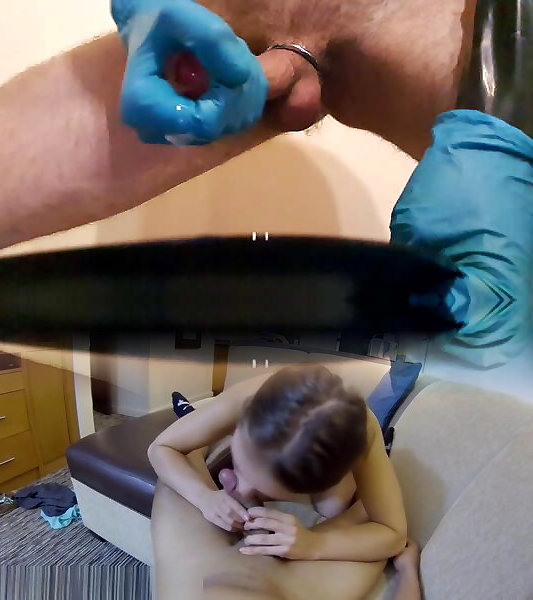 Jizm on a plate with Two layers of spandex gloves
