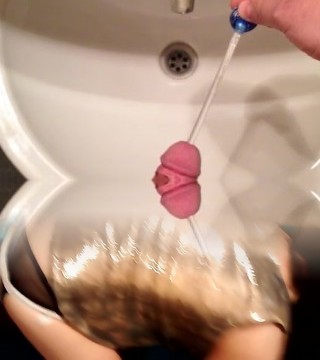foreskin docking, stretching with whisk injection and cum